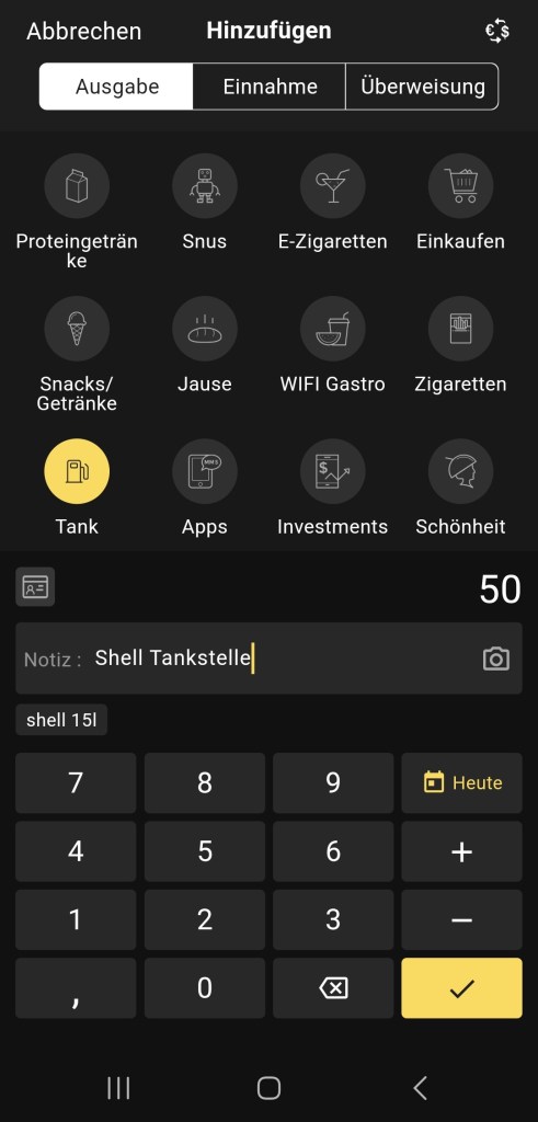 ✅ Schnelle Eintragung – Das Erfassen von Ausgaben geht super schnell.